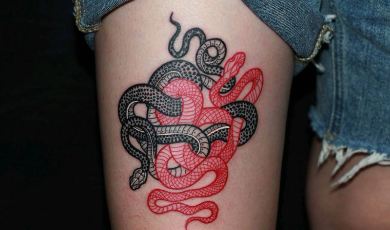当前位置: 首页 >广东省东莞市纹身店-Queen纹刺世家纹身图案>蛇纹身图片_腿部纹身图案