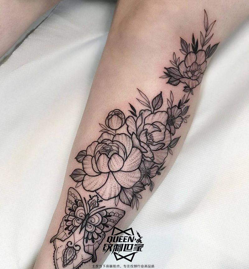 一组15张莲花纹身手