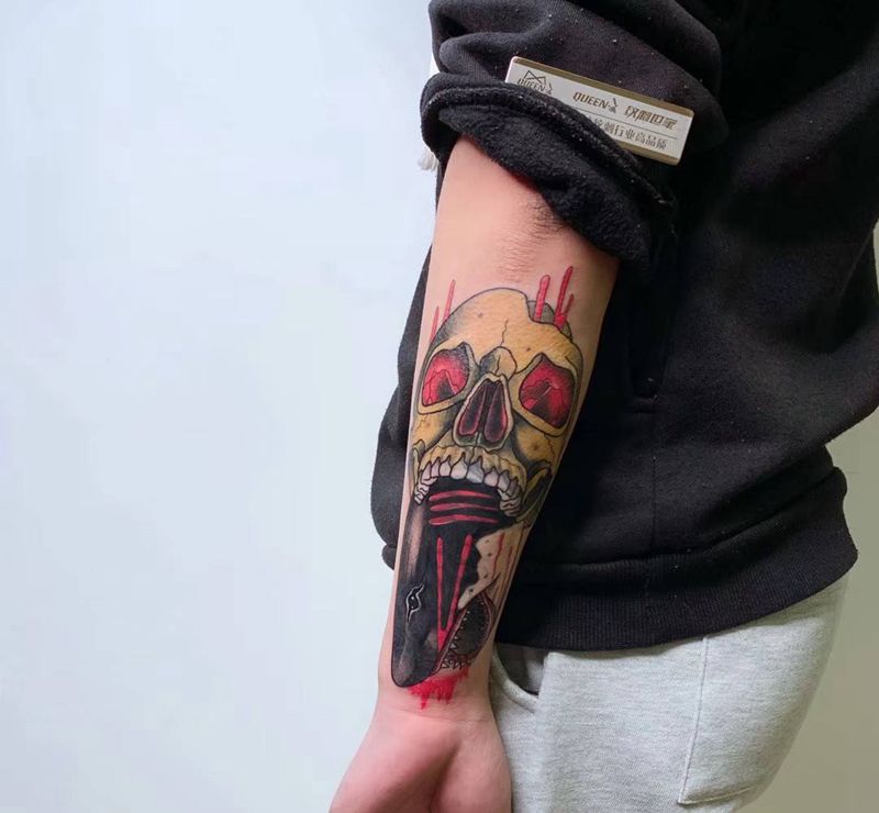 当前位置: 首页 >广东省东莞市纹身店-Queen纹刺世家纹身图案>毁图遮盖~纹身图片_手臂Old School纹身图案