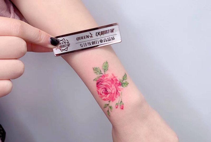 • 手背潮流时尚的玫瑰花眼睛纹身图案