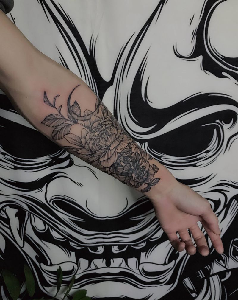 当前位置: 首页 >广东省东莞市纹身店-刺青堂纹身纹身图案>素花纹身图片_手臂新传统水墨纹身图案