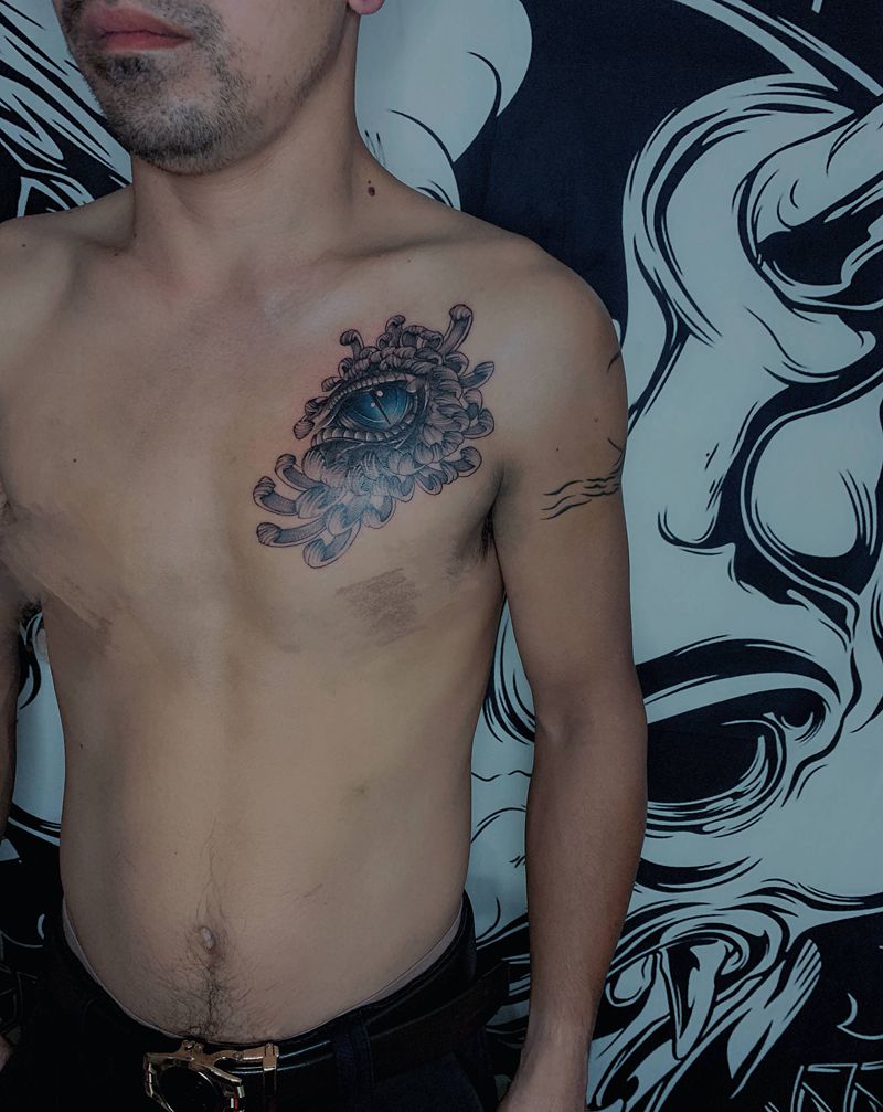诱惑之眼纹身图片_胸部欧美写实水墨纹身图案