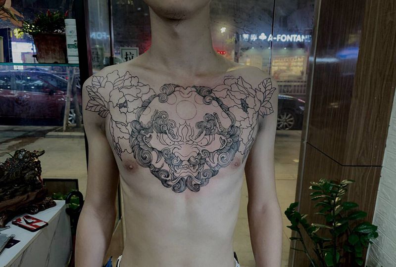 当前位置: 首页 >广东省东莞市纹身店-刺青堂纹身纹身图案>唐狮线条纹身图片_胸部新传统纹身图案