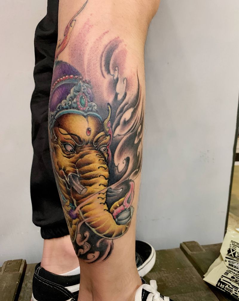 当前位置: 首页 >广东省东莞市纹身店-刺青堂纹身纹身图案>象神纹身图片_腿部新传统纹身图案