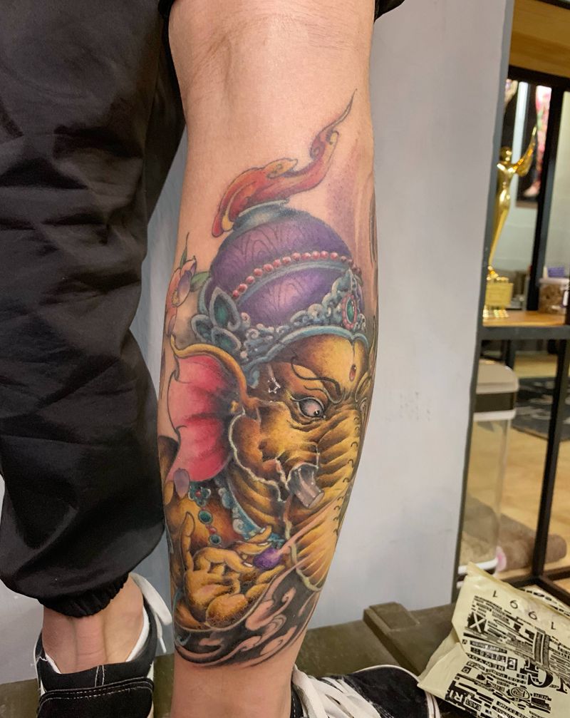 当前位置: 首页 >广东省东莞市纹身店-刺青堂纹身纹身图案>象神纹身图片_腿部新传统纹身图案