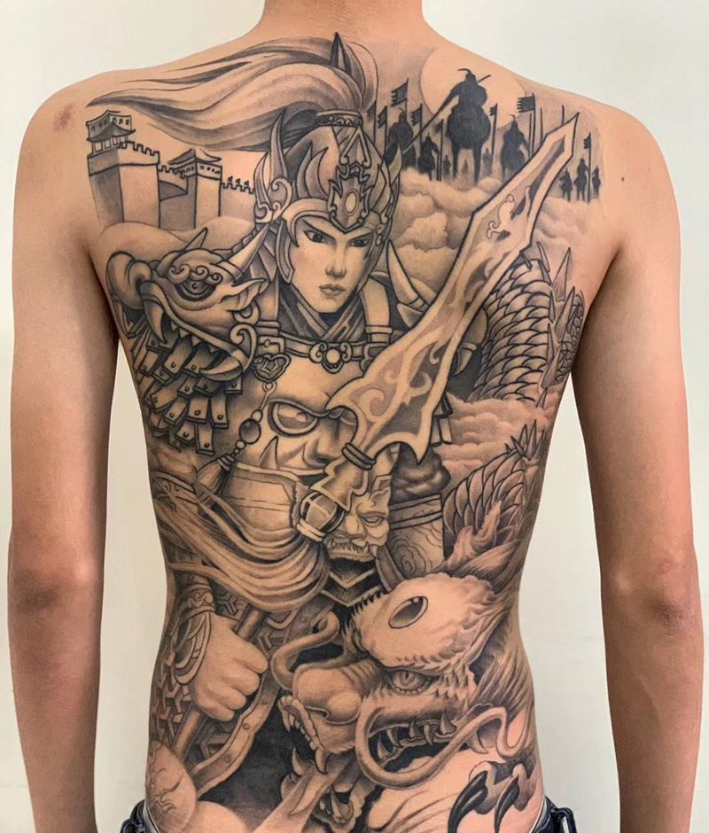 • 黑灰满背纹身图案