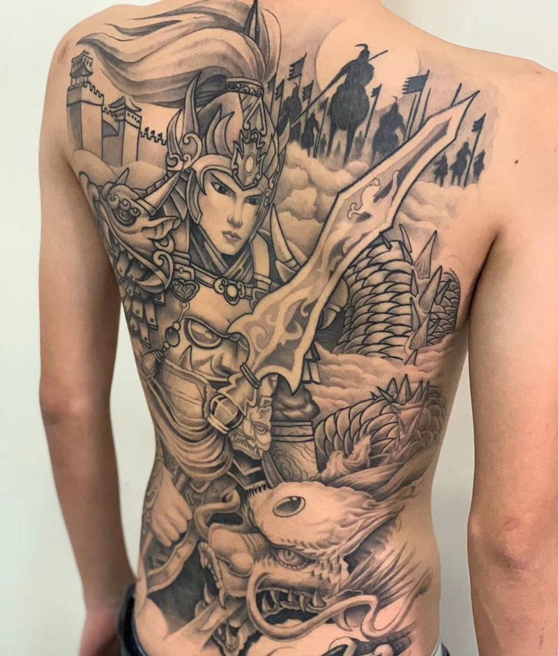 黑灰满背纹身图案