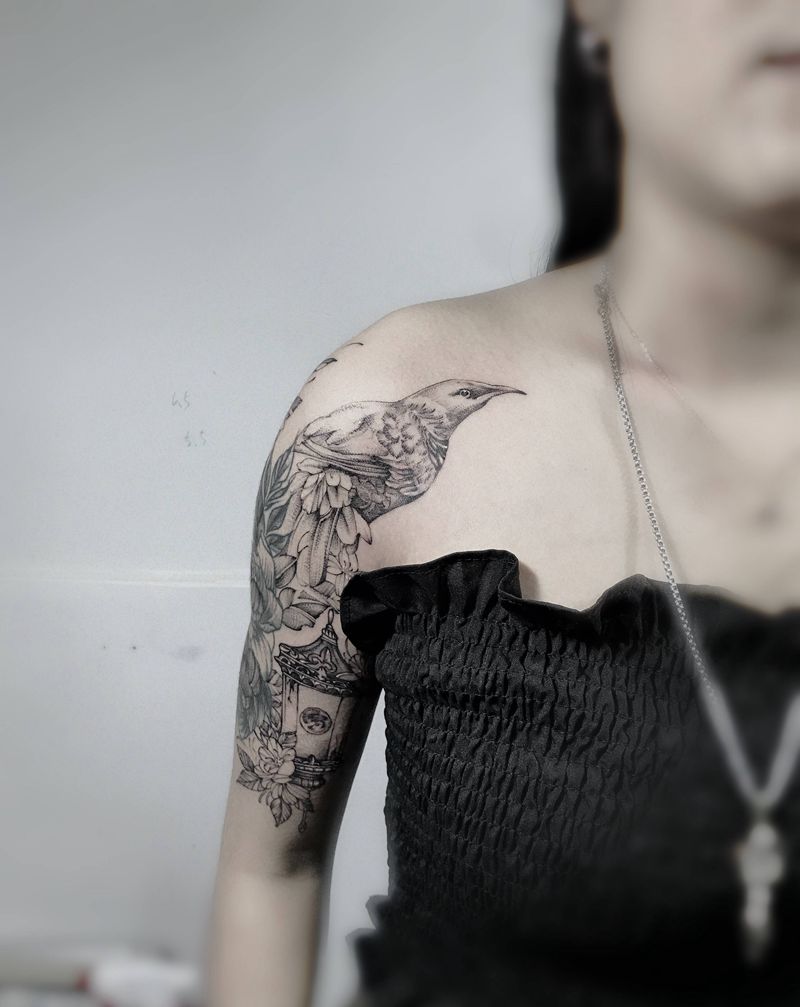 • 纹身吧推荐的披肩图腾半胛纹身图案作品展示