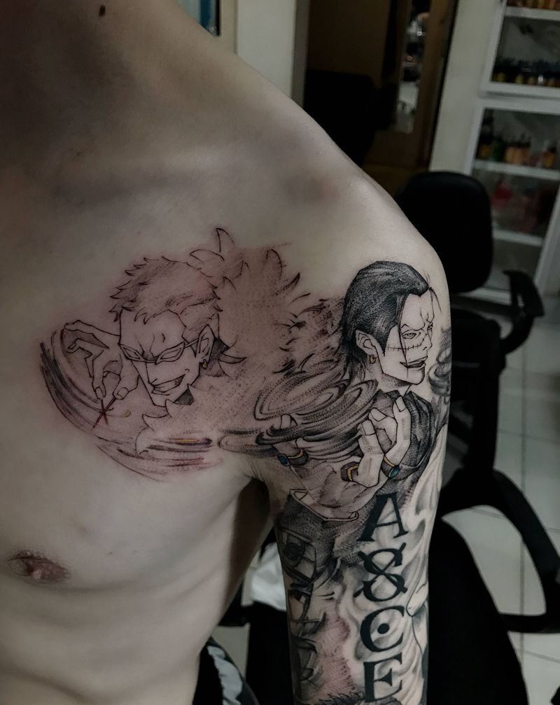 海贼王动漫作品纹身图片_手臂肩部水墨纹身图案
