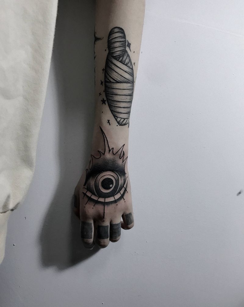 木乃伊和斯股眼睛纹身图片_手臂图腾点刺纹身图案