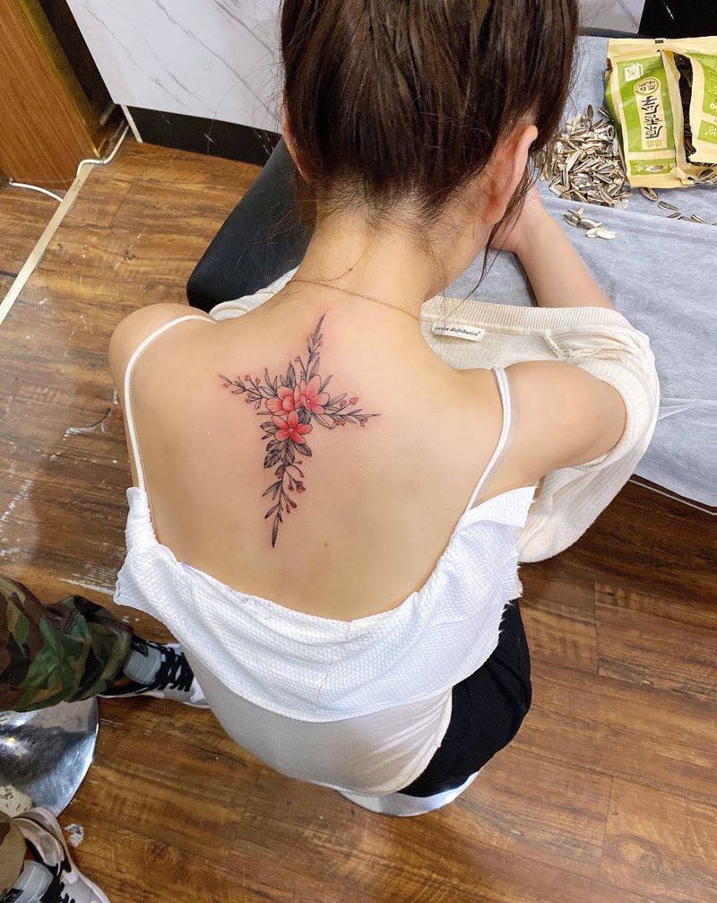 当前位置: 首页 >广东省东莞市纹身店-刺青堂纹身纹身图案>后背素花纹身图片_颈部水墨水彩纹身图案