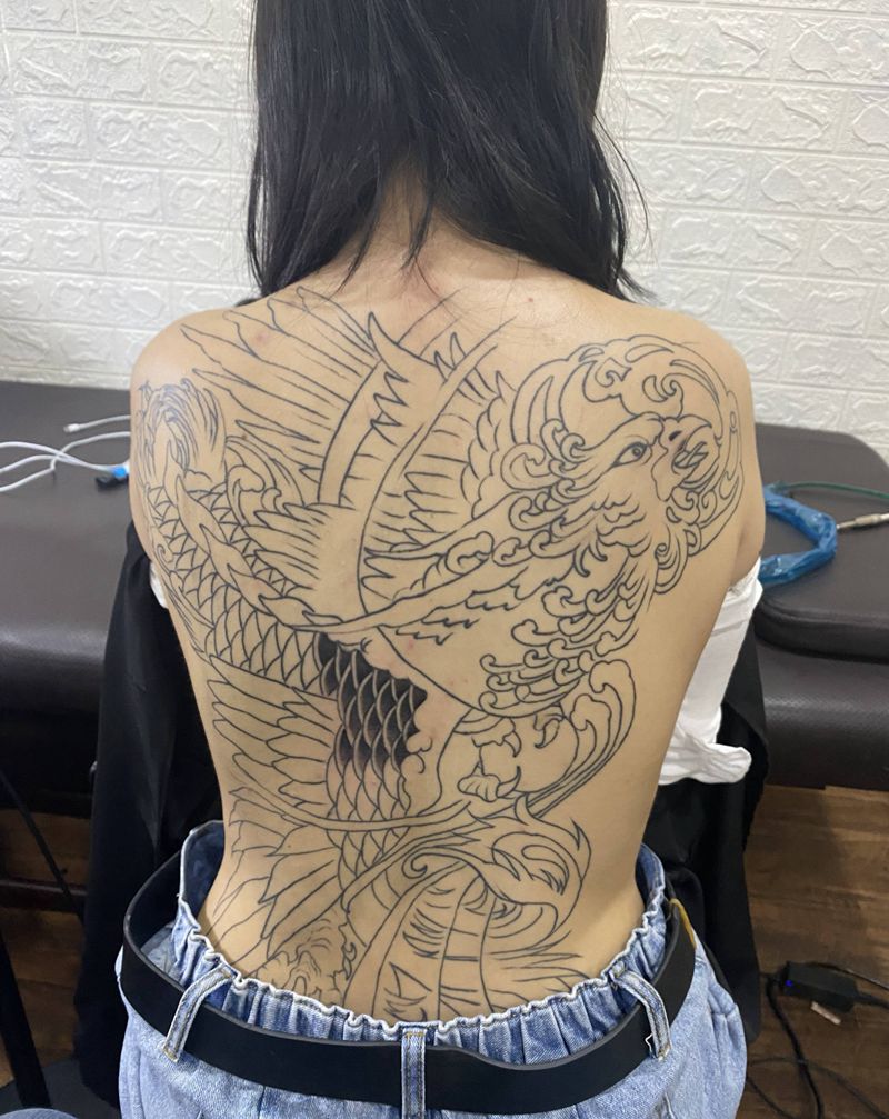 • 黑灰满背纹身图案