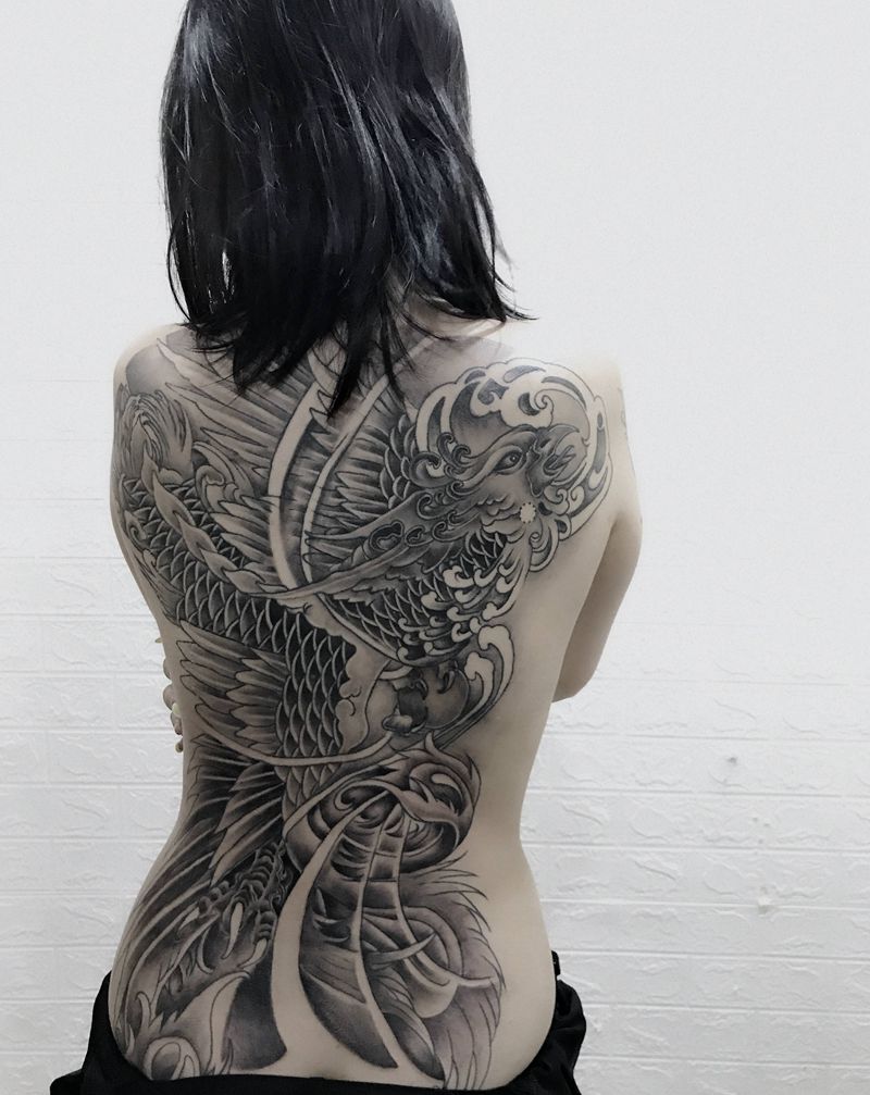 • 黑灰满背纹身图案