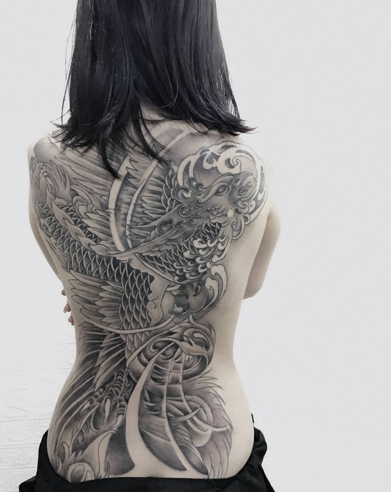 黑灰修改作品纹身图片_背部新传统纹身图案