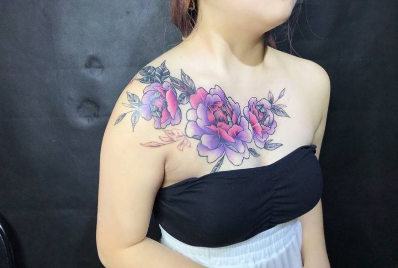 • 女性大花胸纹身_43张霸气漂亮的女性大花胸纹身图案作品