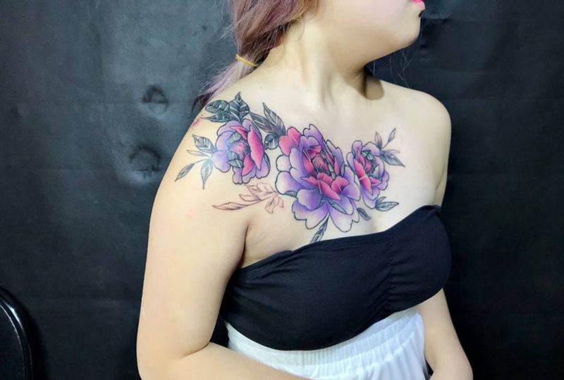 • 女性大花胸纹身_43张霸气漂亮的女性大花胸纹身图案作品