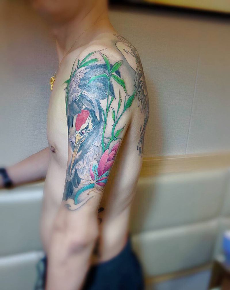 仙鹤作品纹身图片_手臂新传统纹身图案