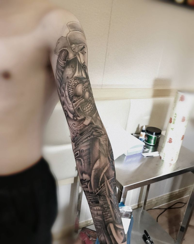 当前位置: 首页 >广东省东莞市纹身店-刺青堂纹身纹身图案>花臂三国花臂纹身图片_手臂新传统纹身图案