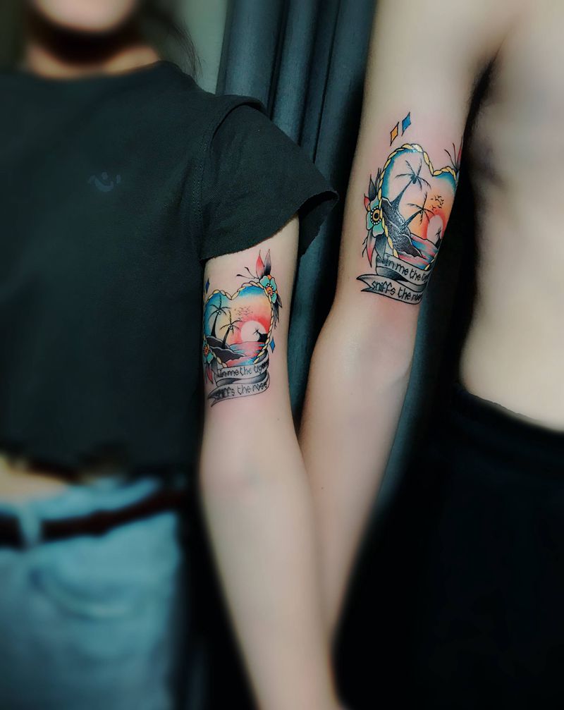 当前位置: 首页 >广东省东莞市纹身店-刺青堂纹身纹身图案>原创设计情侣图纹身图片_手臂水墨水彩纹身图案