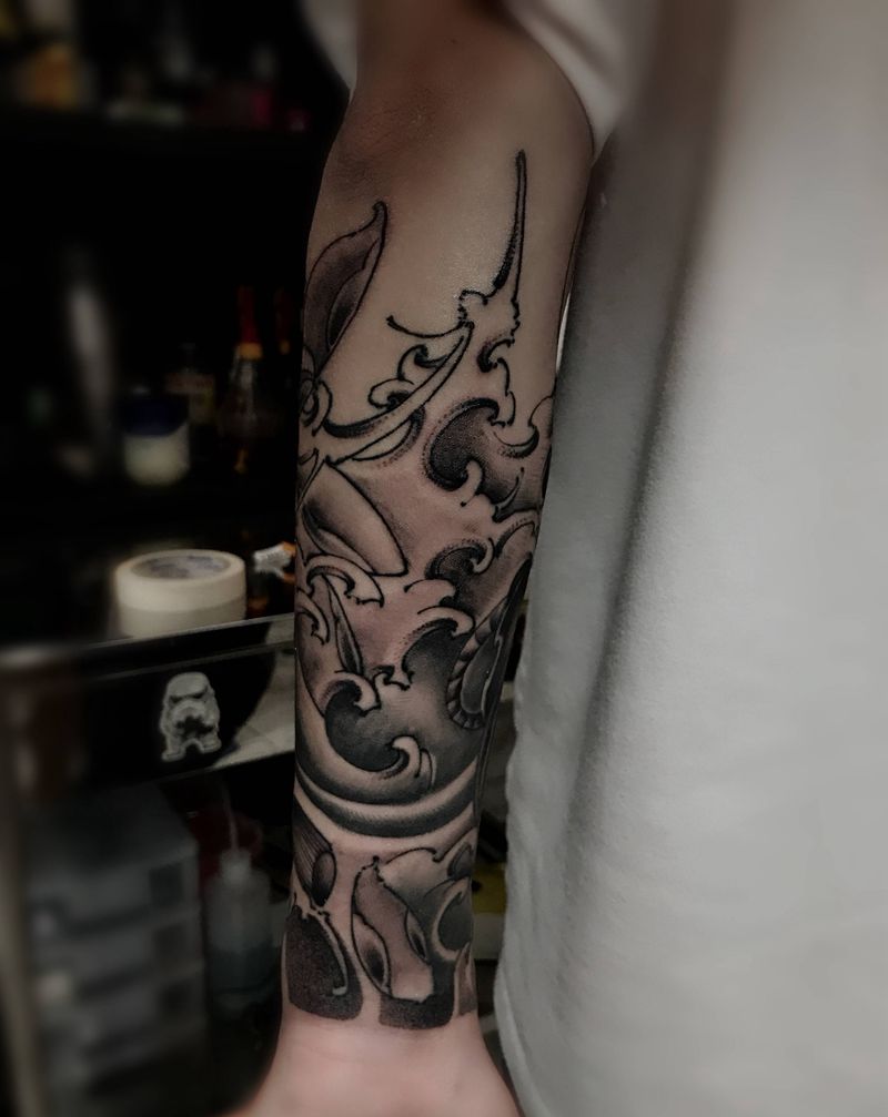 当前位置: 首页 >广东省东莞市纹身店-刺青堂纹身纹身图案>般若和水浪纹身图片_手臂新传统纹身图案