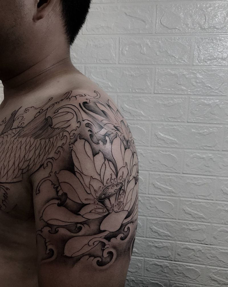 当前位置: 首页 >广东省东莞市纹身店-刺青堂纹身纹身图案>手绘设计半胛纹身图片_手部胸部新传统纹身图案