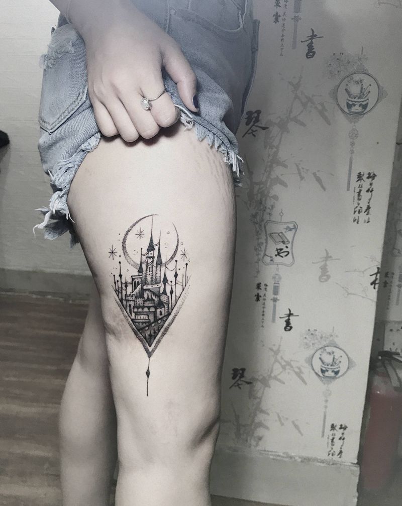 遮盖作品纹身图片_胸部腿部水墨纹身图案