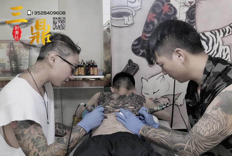 黑灰满背纹身图案