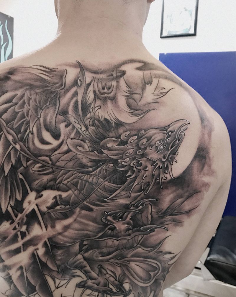 当前位置: 首页 >广东省东莞市纹身店-刺青堂纹身纹身图案>凤凰满背作品纹身图片_背部新传统纹身图案