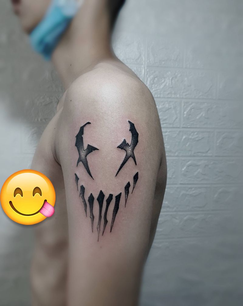 当前位置: 首页 >广东省东莞市纹身店-刺青堂纹身纹身图案>#三鼎刺青社# 毒液图腾印花纹身图片_手臂图腾纹身图案