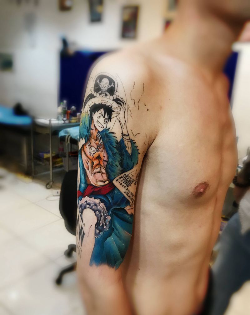 当前位置: 首页 >广东省东莞市纹身店-刺青堂纹身纹身图案>15亿新世界五黄路飞纹身图片_手臂欧美写实水彩纹身图案