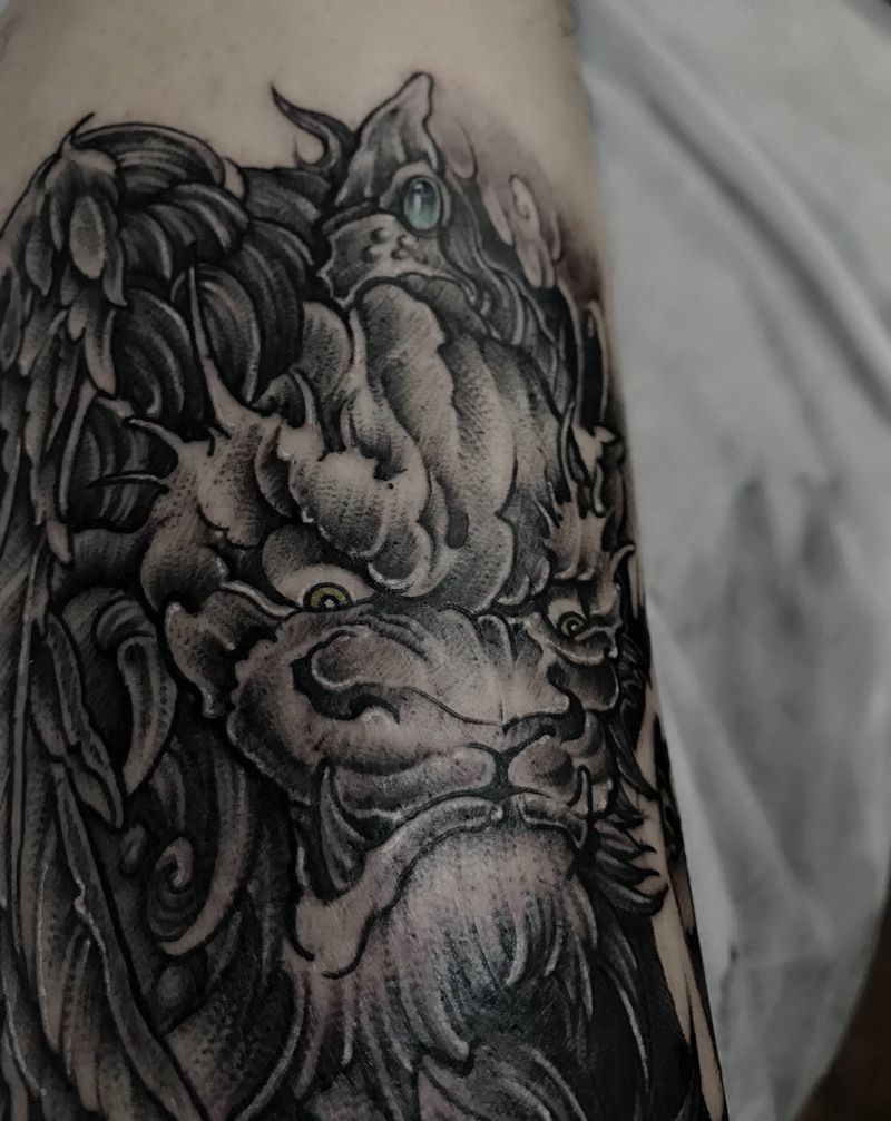 当前位置: 首页 >广东省东莞市纹身店-刺青堂纹身纹身图案>貔貅纹身图片_腿部脚部新传统纹身图案