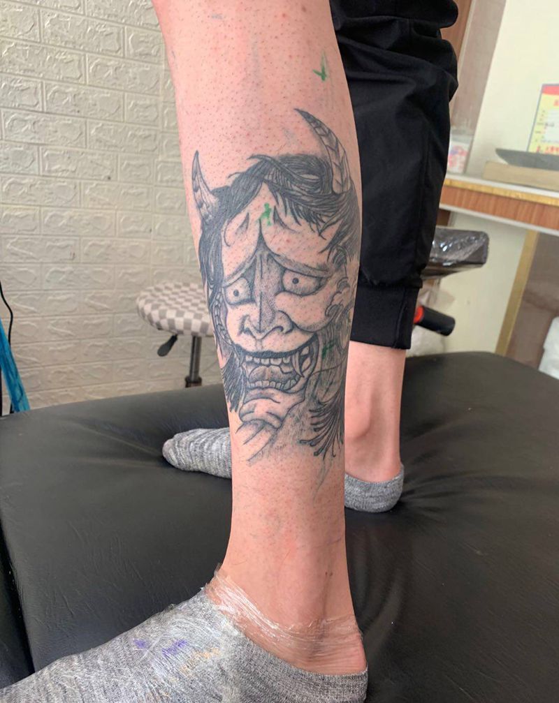 • T网红王老大花腿龙纹身图片_腿部新传统纹身图案