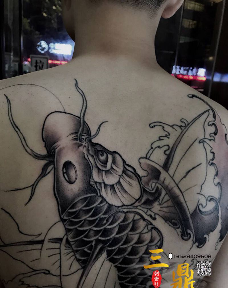 黑灰满背纹身图案