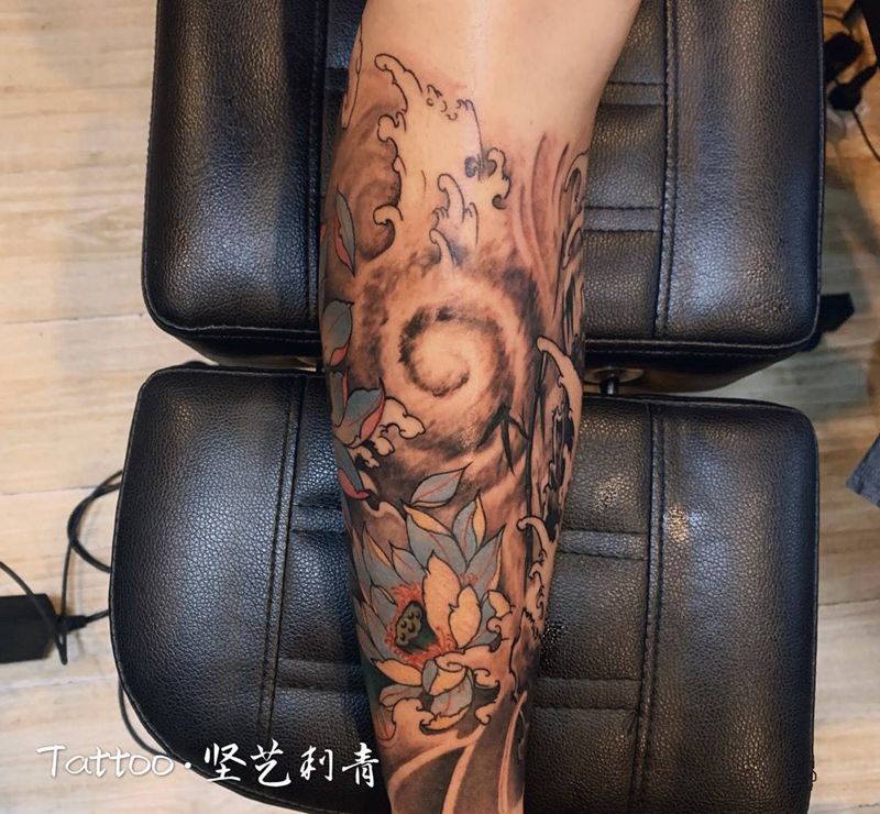当前位置: 首页 >广东省清远市纹身店-坚艺刺青纹身图案>包小腿纹身图片_腿部新传统纹身图案