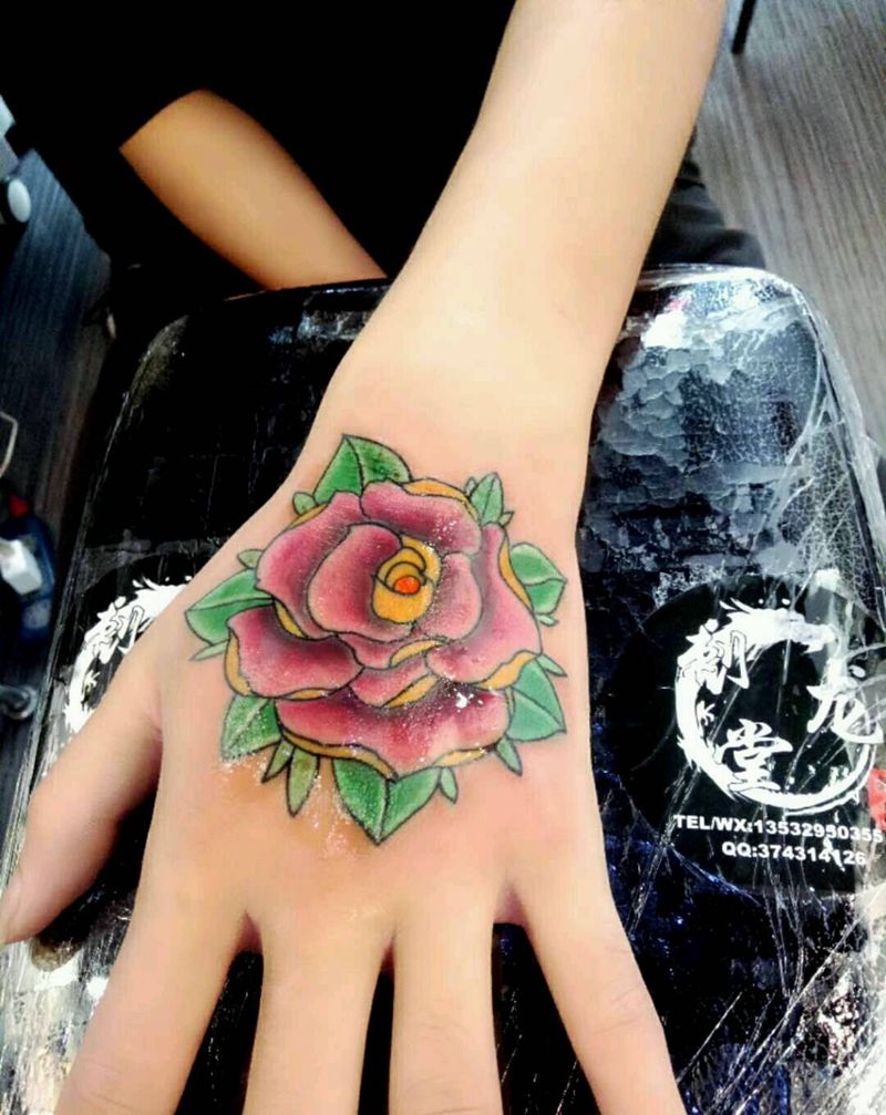 • 手背潮流时尚的玫瑰花眼睛纹身图案