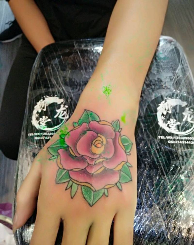 • 手背潮流时尚的玫瑰花眼睛纹身图案