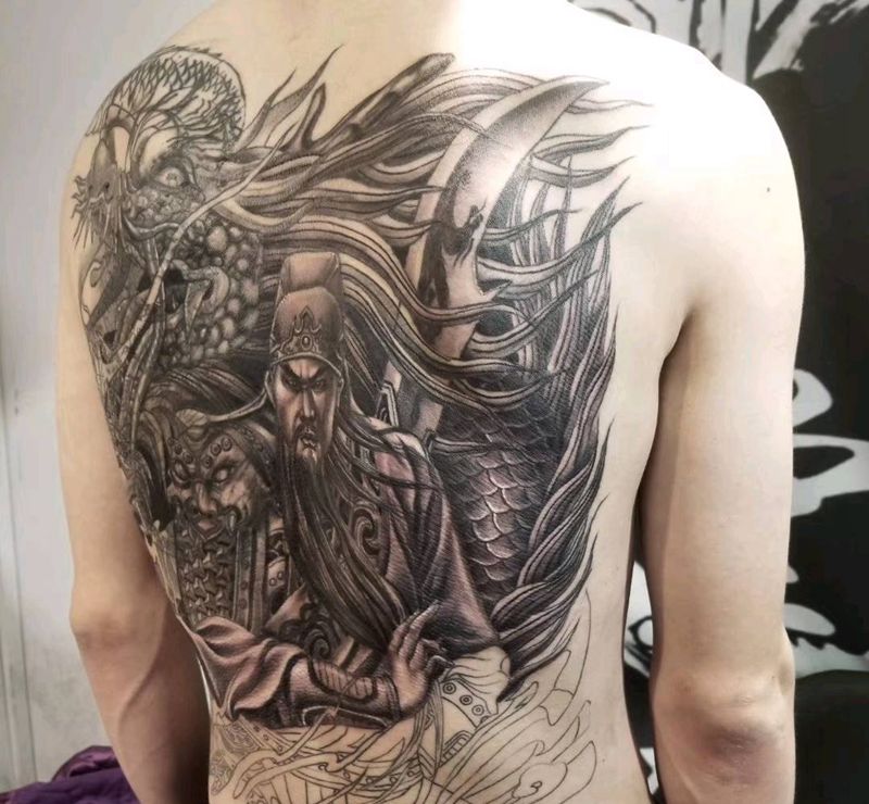 • 黑灰满背纹身图案