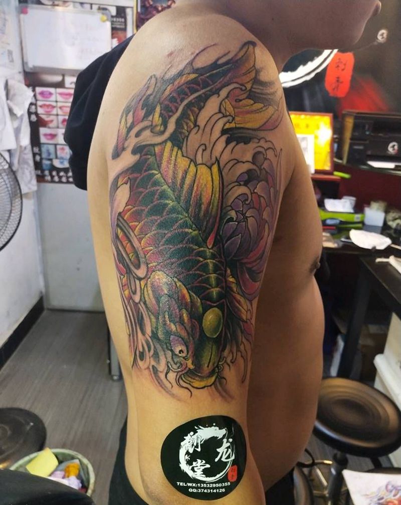 当前位置: 首页 >广东省东莞市纹身店-刺龙堂纹身纹身图案>红烧鱼纹身图片_手臂新传统纹身图案