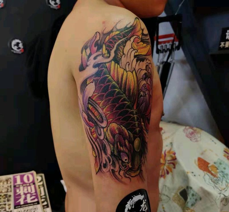 当前位置: 首页 >广东省东莞市纹身店-刺龙堂纹身纹身图案>红烧鱼纹身图片_手臂新传统纹身图案
