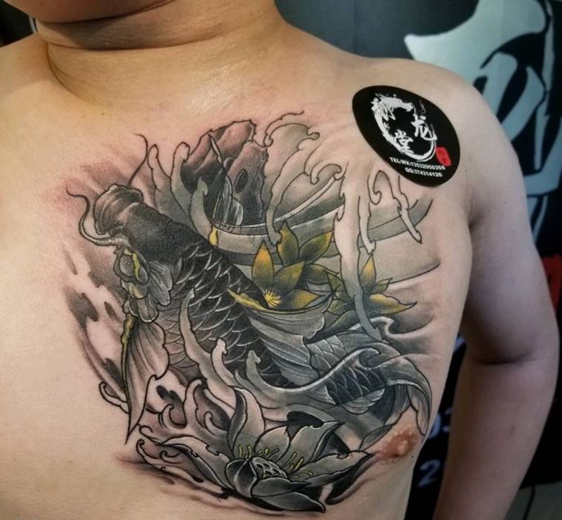 当前位置: 首页 >广东省东莞市纹身店-刺龙堂纹身纹身图案>黑炭烧鱼纹身图片_胸部新传统纹身图案