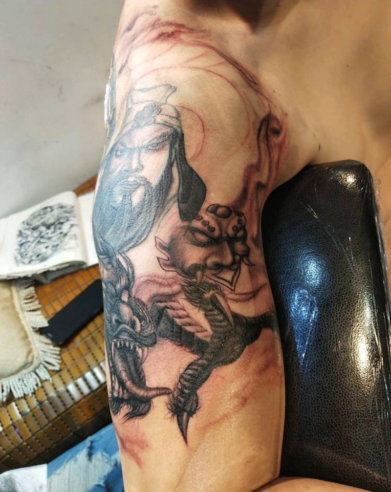 当前位置: 首页 >广东省东莞市纹身店-刺龙堂纹身纹身图案>关公盘龙纹身图片_手臂纹身图案