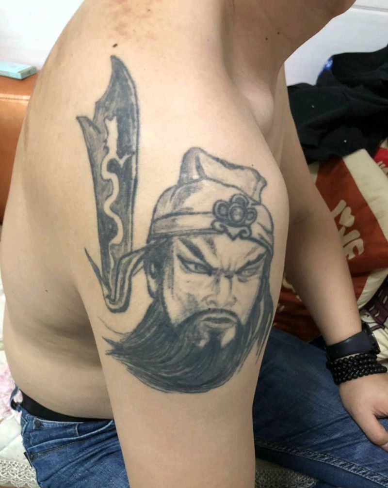 当前位置: 首页 >广东省东莞市纹身店-刺龙堂纹身纹身图案>关公盘龙纹身图片_手臂纹身图案