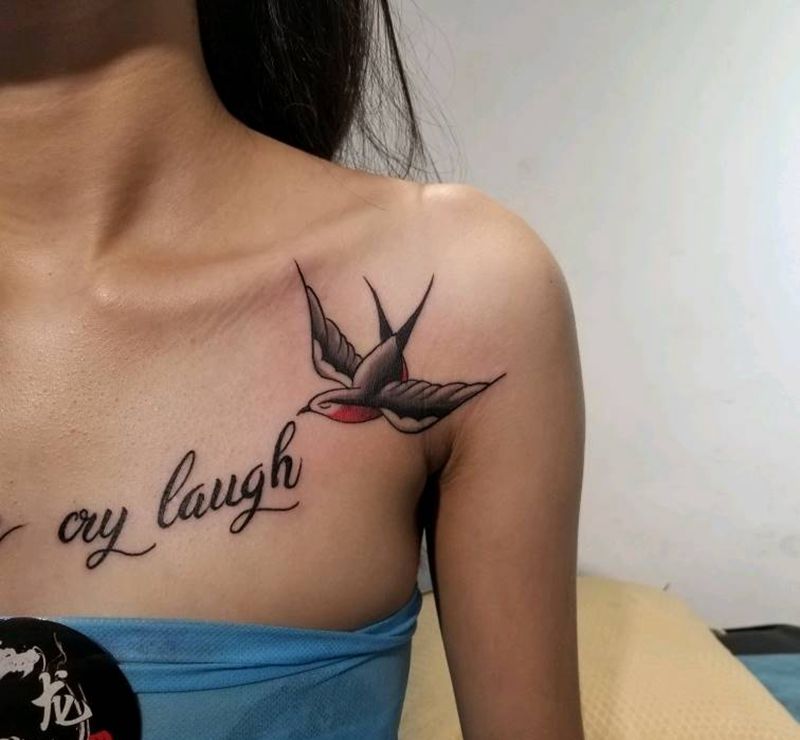 燕子纹身图片_胸部花体字纹身图案