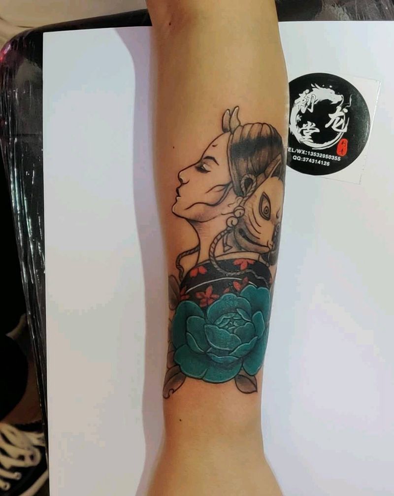 当前位置: 首页 >广东省东莞市纹身店-刺龙堂纹身纹身图案>艺伎纹身图片_手臂纹身图案
