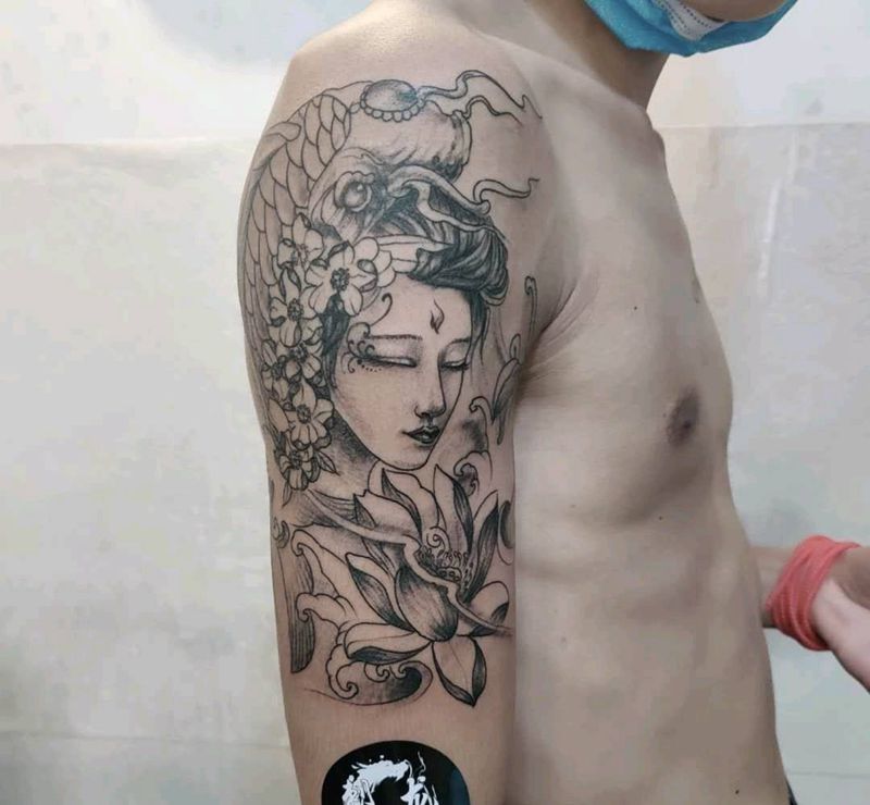 当前位置: 首页 >广东省东莞市纹身店-刺龙堂纹身纹身图案>艺伎纹身图片_手臂纹身图案