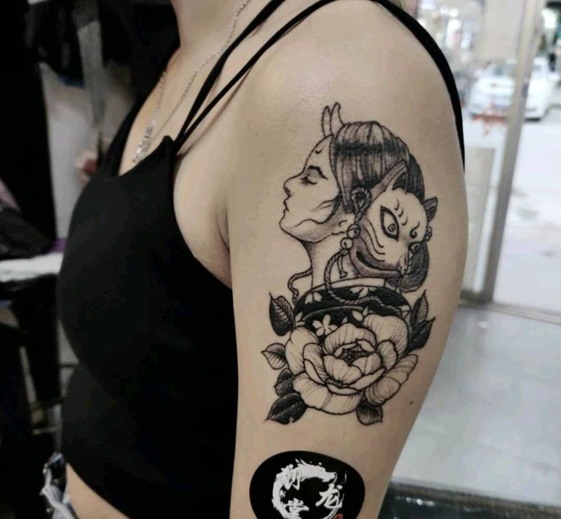 当前位置: 首页 >广东省东莞市纹身店-刺龙堂纹身纹身图案>艺伎纹身图片_手臂纹身图案