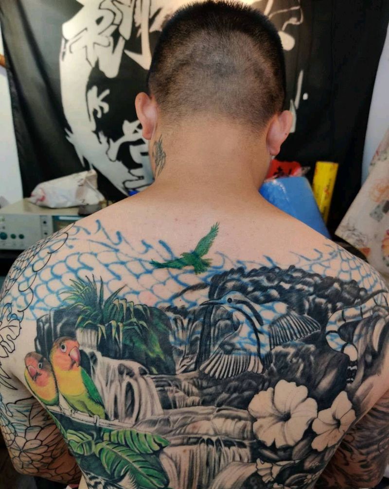 • 黑灰满背纹身图案