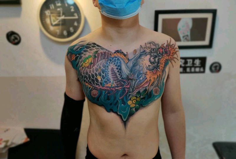 当前位置: 首页 >广东省东莞市纹身店-刺龙堂纹身纹身图案>花胸纹身图片_胸部欧美写实新传统纹身图案