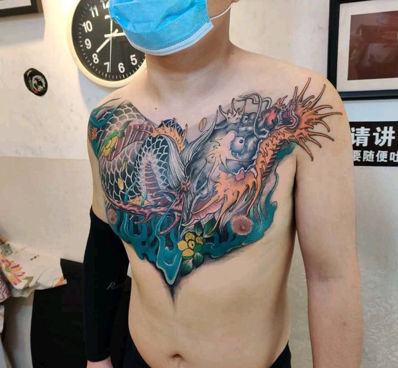 当前位置: 首页 >广东省东莞市纹身店-刺龙堂纹身纹身图案>花胸纹身图片_胸部欧美写实新传统纹身图案
