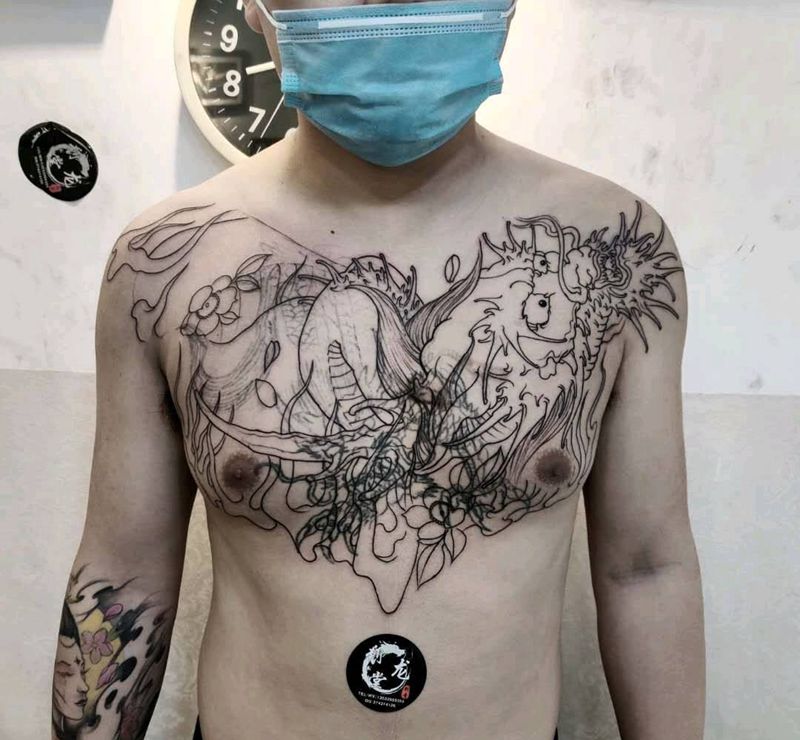 当前位置: 首页 >广东省东莞市纹身店-刺龙堂纹身纹身图案>花胸纹身图片_胸部欧美写实新传统纹身图案
